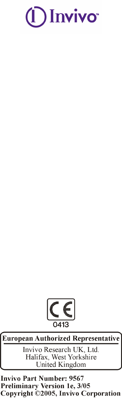 For further information, contact the Regulatory Affairs Department of Invivo Corporation at