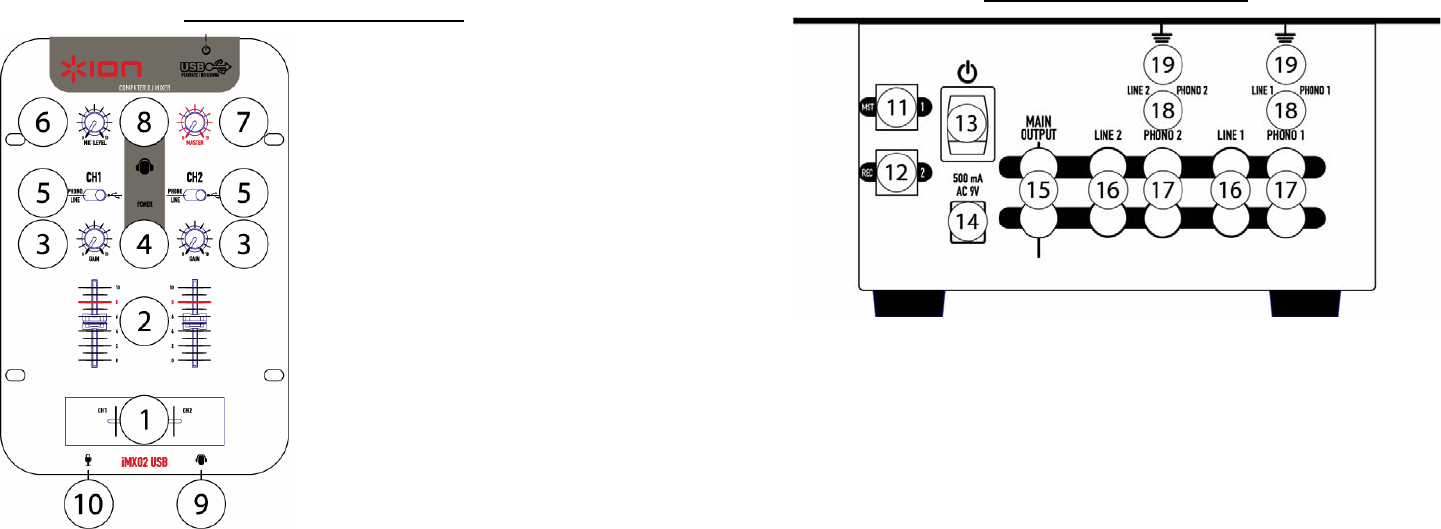 13. Power Switch: Use this switch to turn on the mixer after all input devices