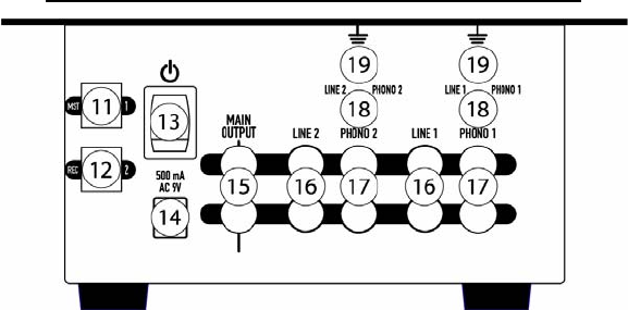 17. Phono Inputs: This input is used for connecting your turntables. Only