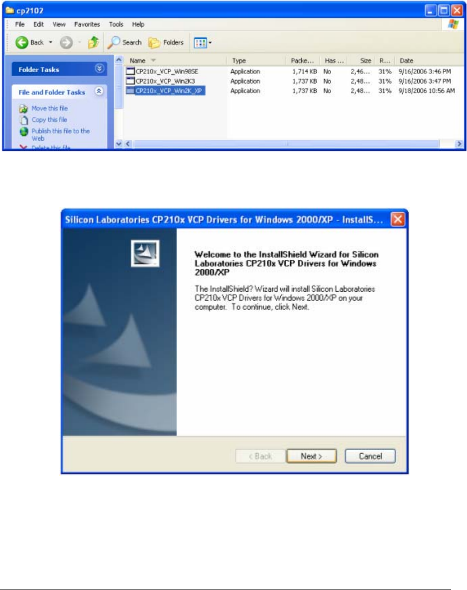 Windows Vista, select CP210x_VCP_Win2K_XP. Double click on it, and you will see: