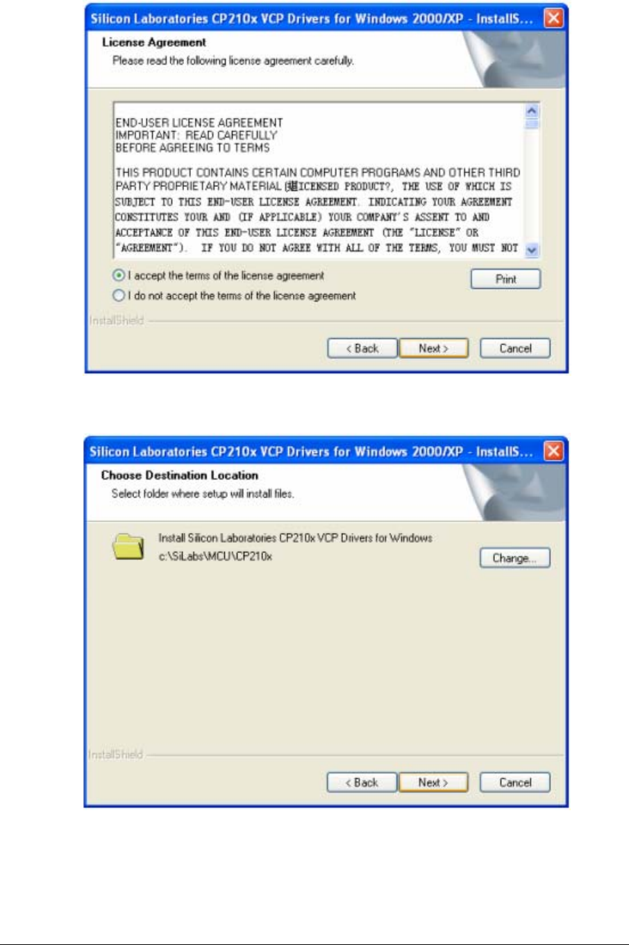 Using the default installation path, c:\SiLabs\MCU\CP210x, or specify your own path by click