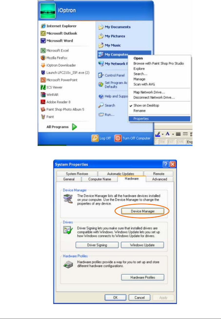 assigned COM port number for the USB connection. To do so, right click “My Computer”, and