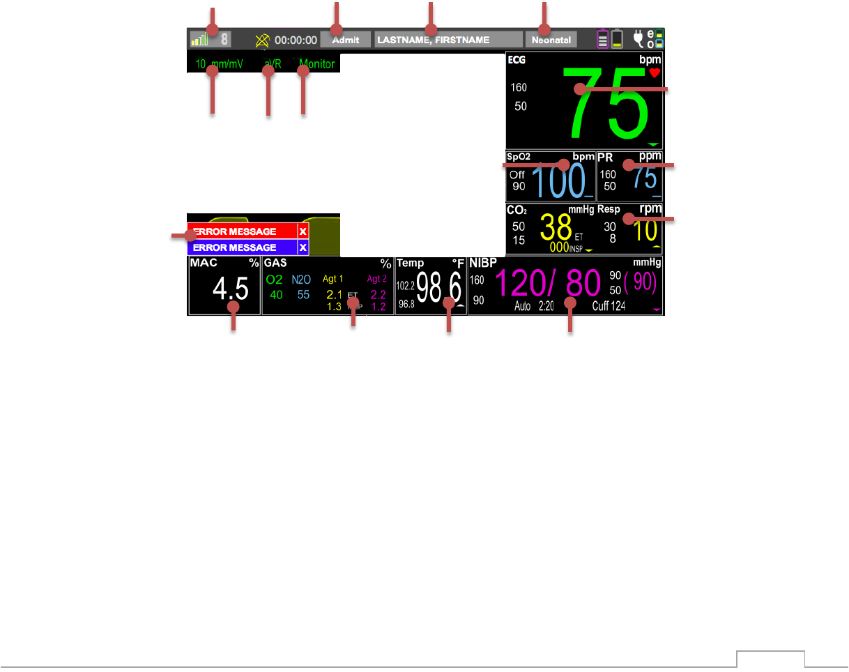 The 3880 monitor and 3885-T Remote Tablet display the following types of information.