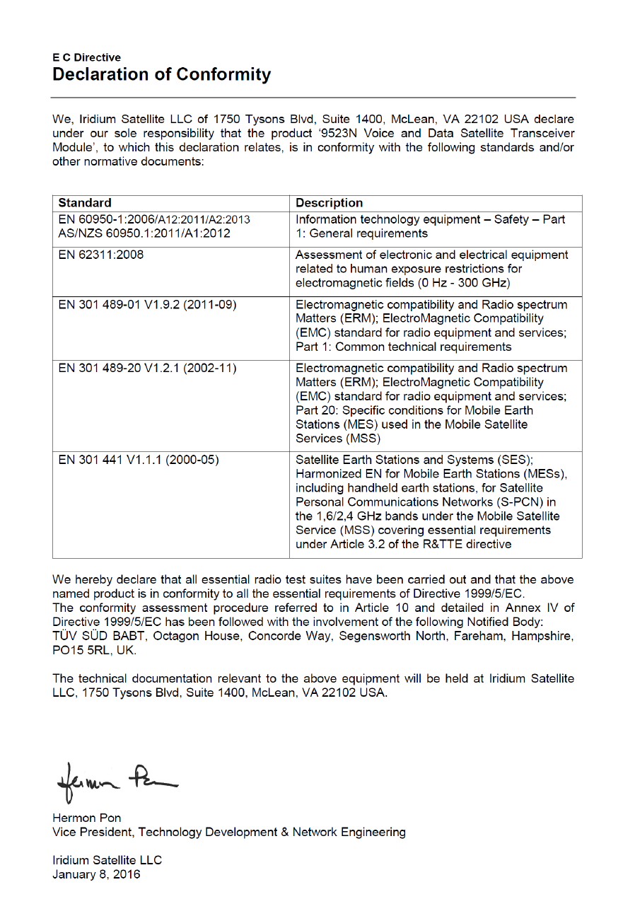 Iridium Satellite 9523N Iridium voice/data modem module User Manual