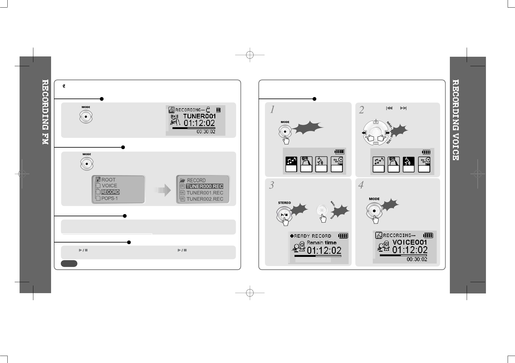 Voice record level is automatically controlled by AGC function. (iFP-340 feature