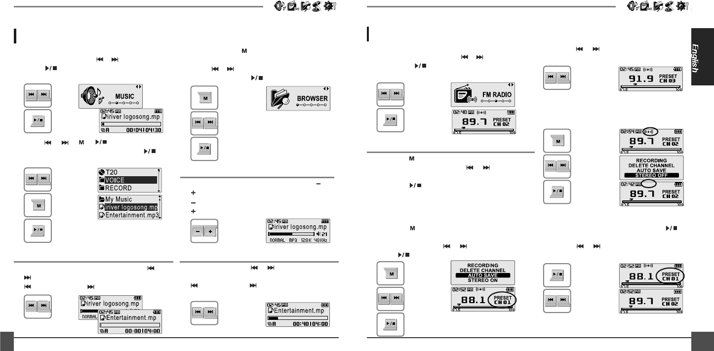 [FM RADIO] by using the , button,