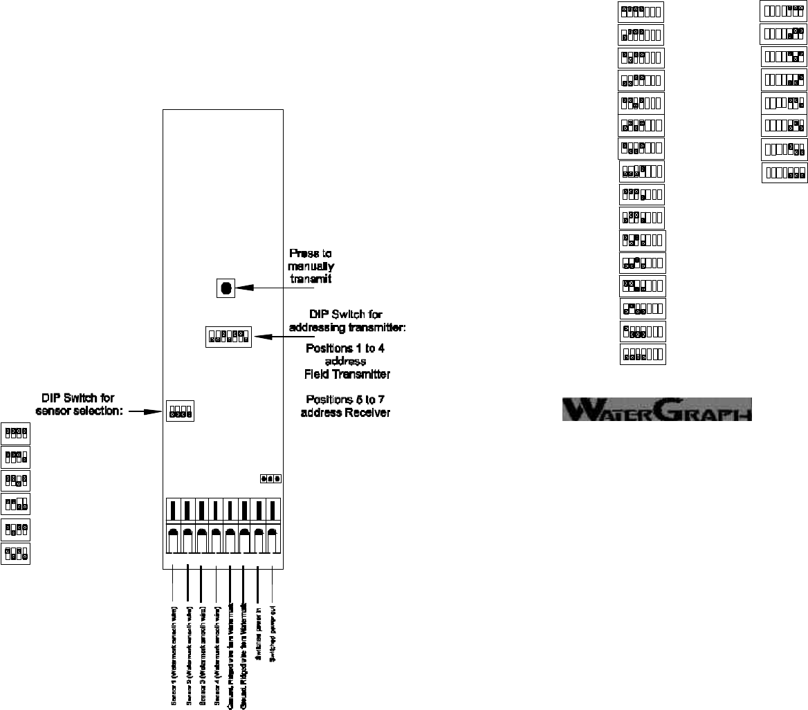 different DIP switches on the circuit board of the transmitter. Diagrams