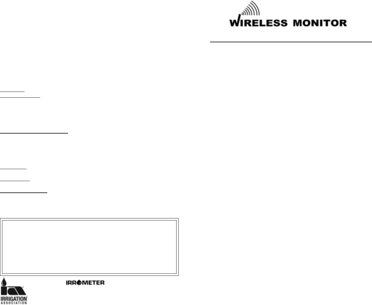 Irrometer Company, Inc. Wireless Monitor Transmitter Users Manual