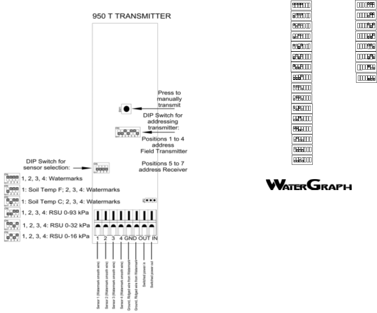 different DIP switches on the circuit board of the transmitter. Diagrams