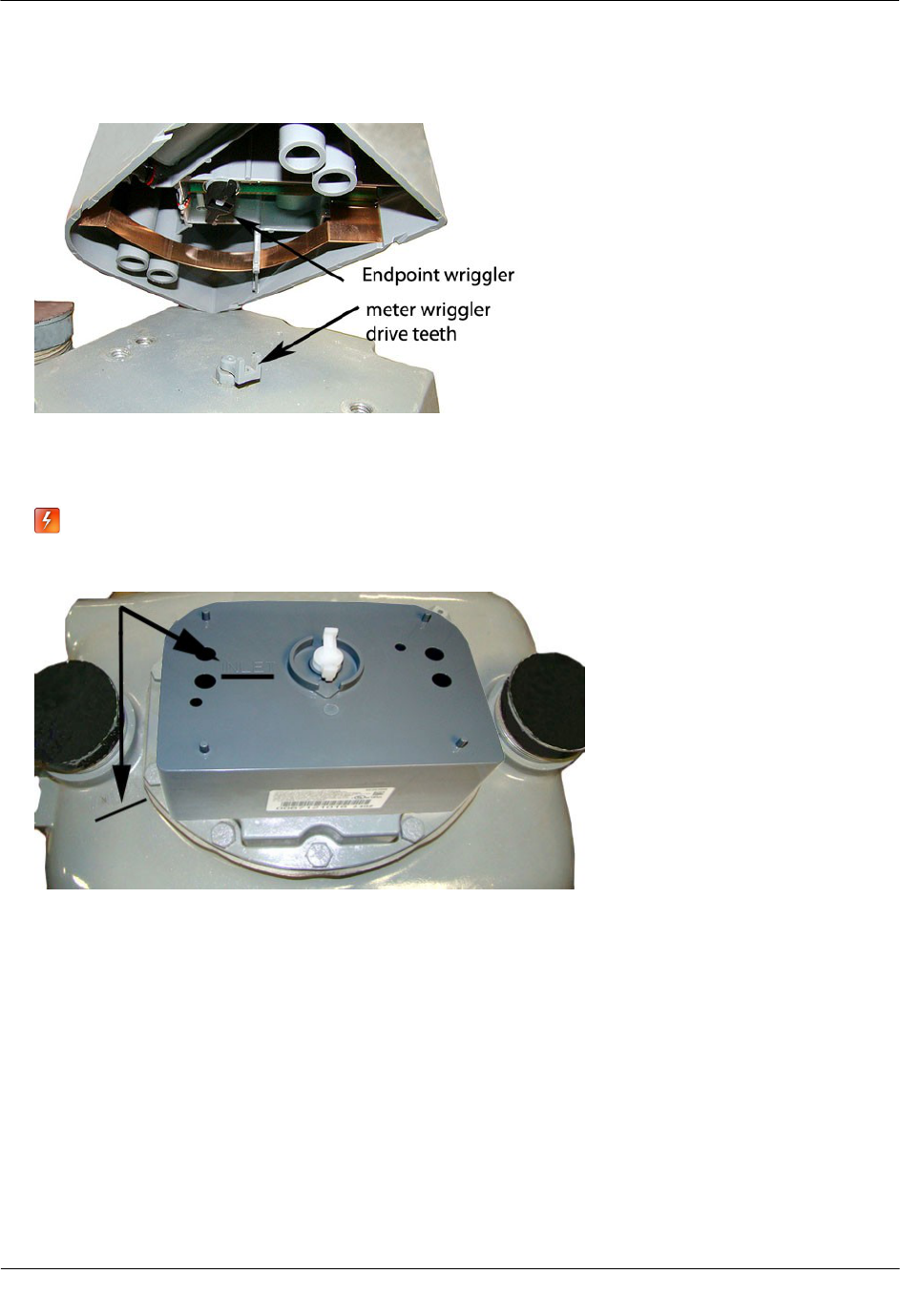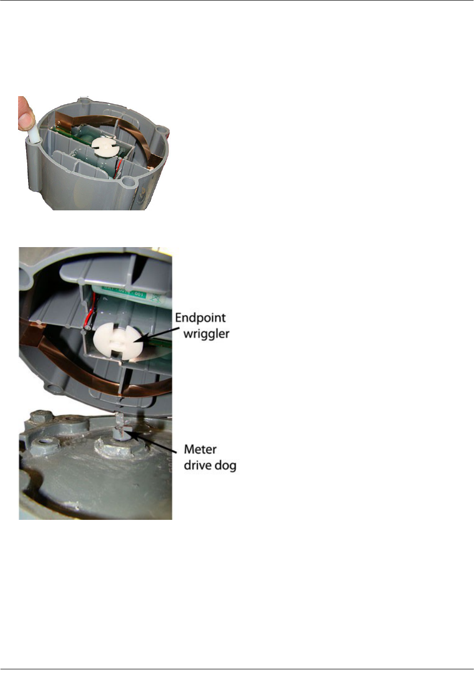 the drive dog and wriggler. The endpoint housing should rest on the top of the meter without gaps.
