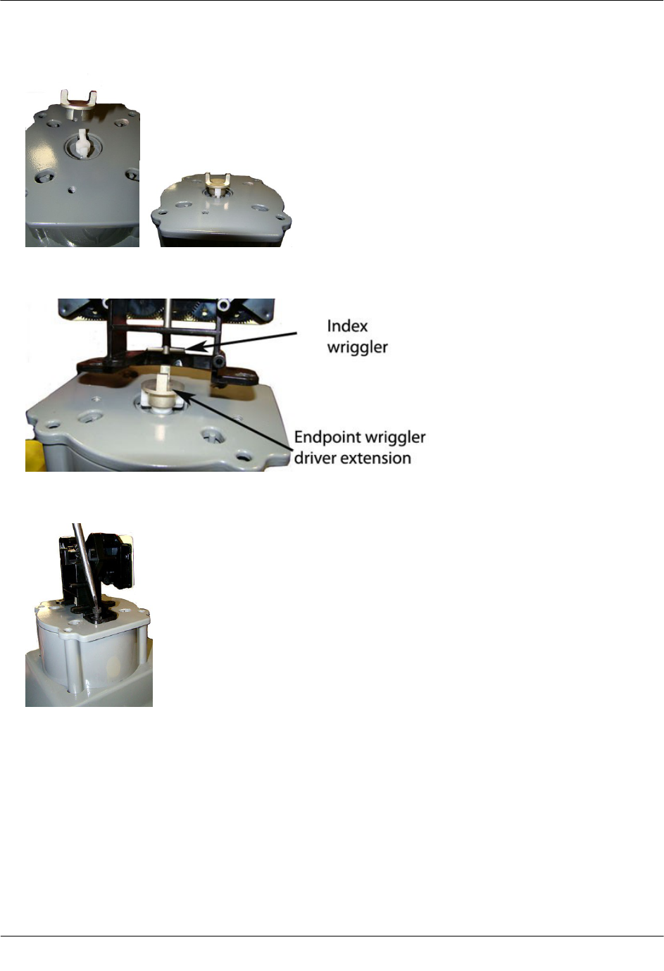 3. After the drive gear aligns with the wriggler gear, the mounting holes line up.