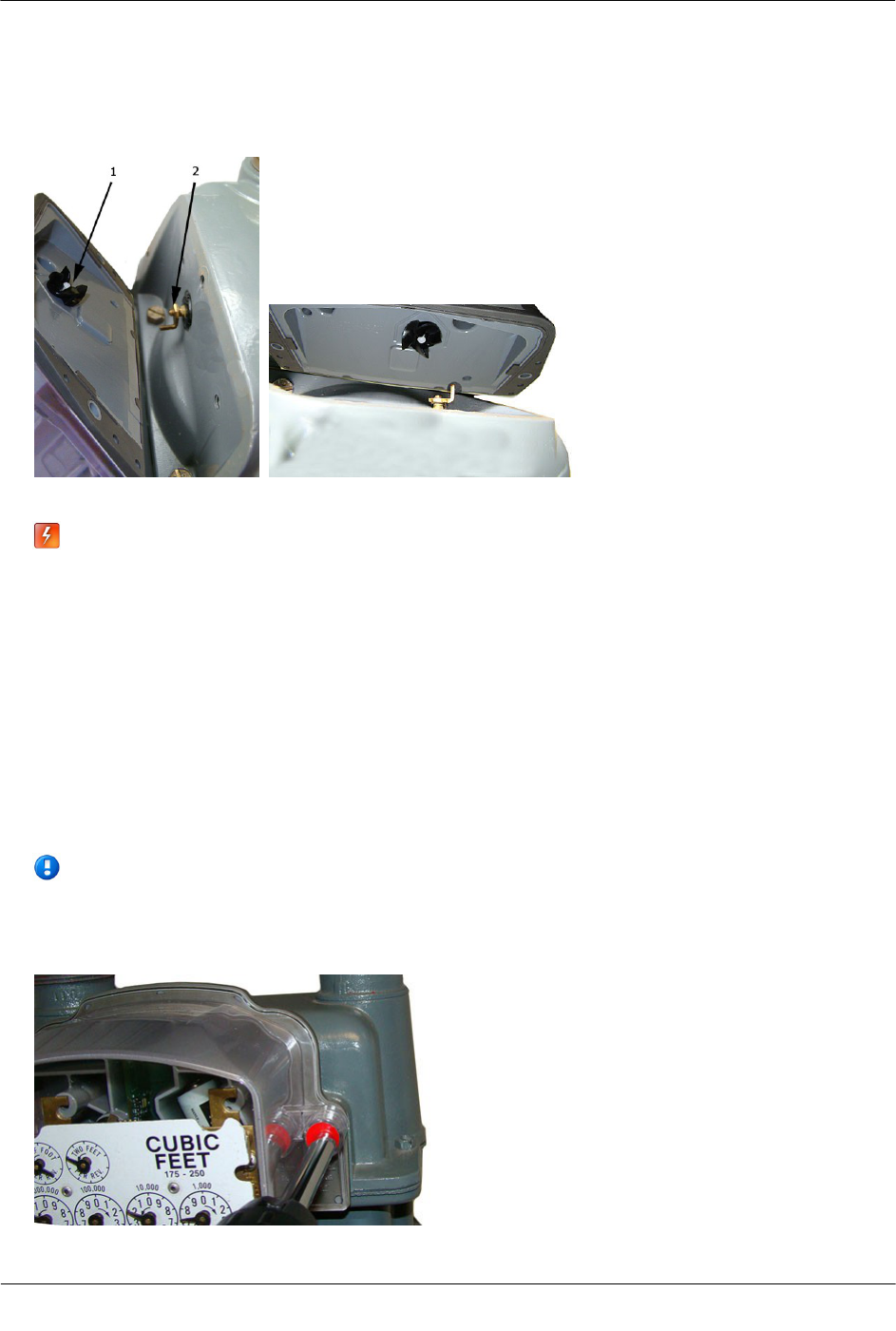 1. Remove the index cover screws and the index cover from the Itron/Sprague meter. Examine the mounting