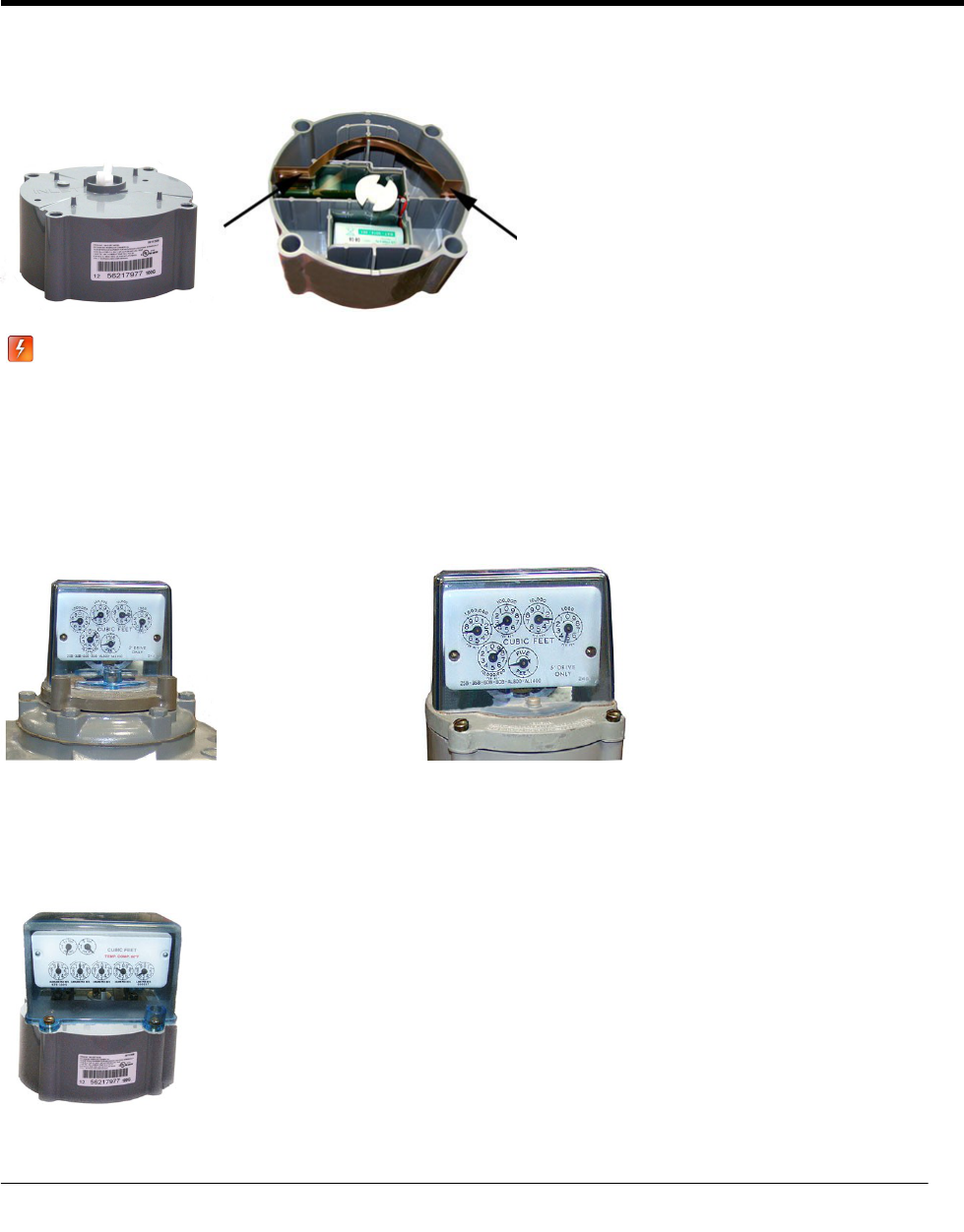 Elster American commercial meter index drive rates may be 5-, 10- or 100 cubic feet. The index shown has a