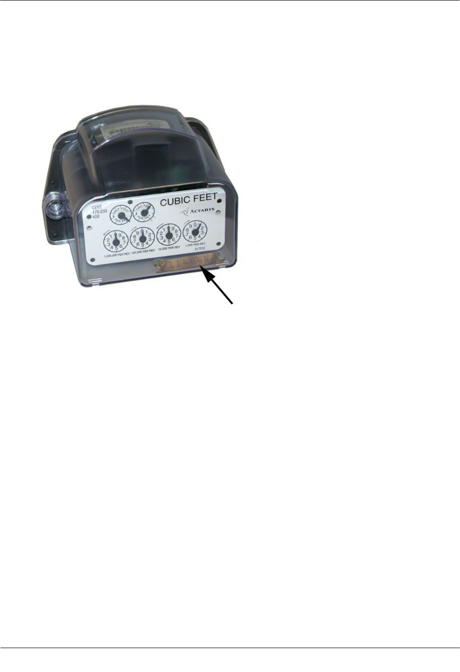 the drive rate. Itron meter index drive rates are typically 2-cubic feet or 0.05 cubic meters (not shown below).