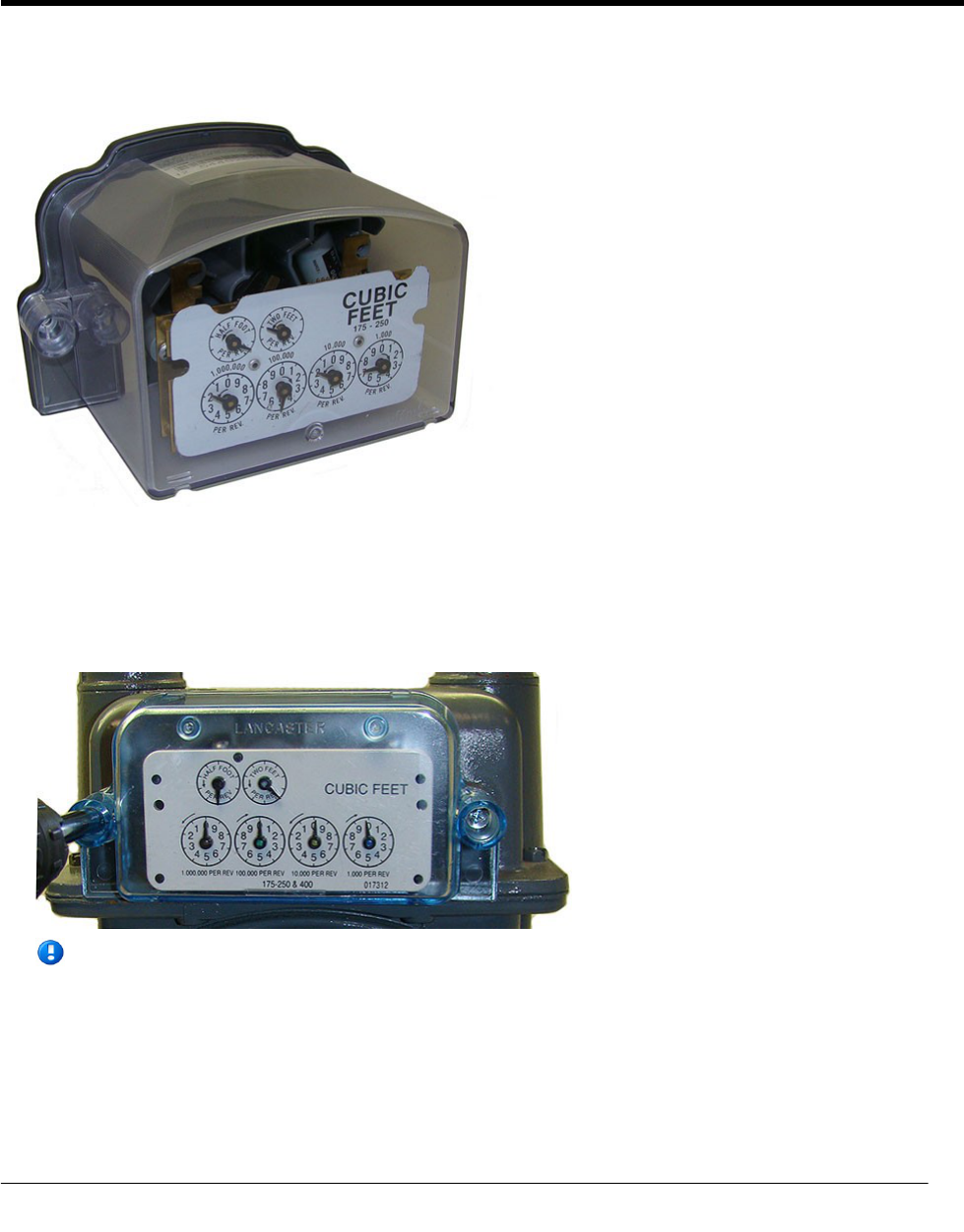 on the drive rate. National/Lancaster meter index drive rates are typically 2-cubic feet.