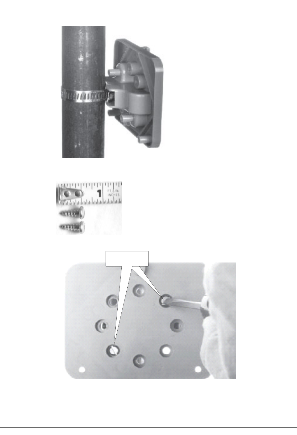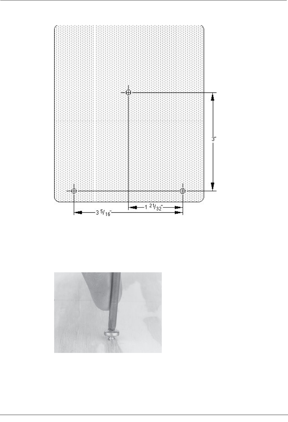 1. Drill three pilot holes in the mounting surface the proper size for the mounting screws,