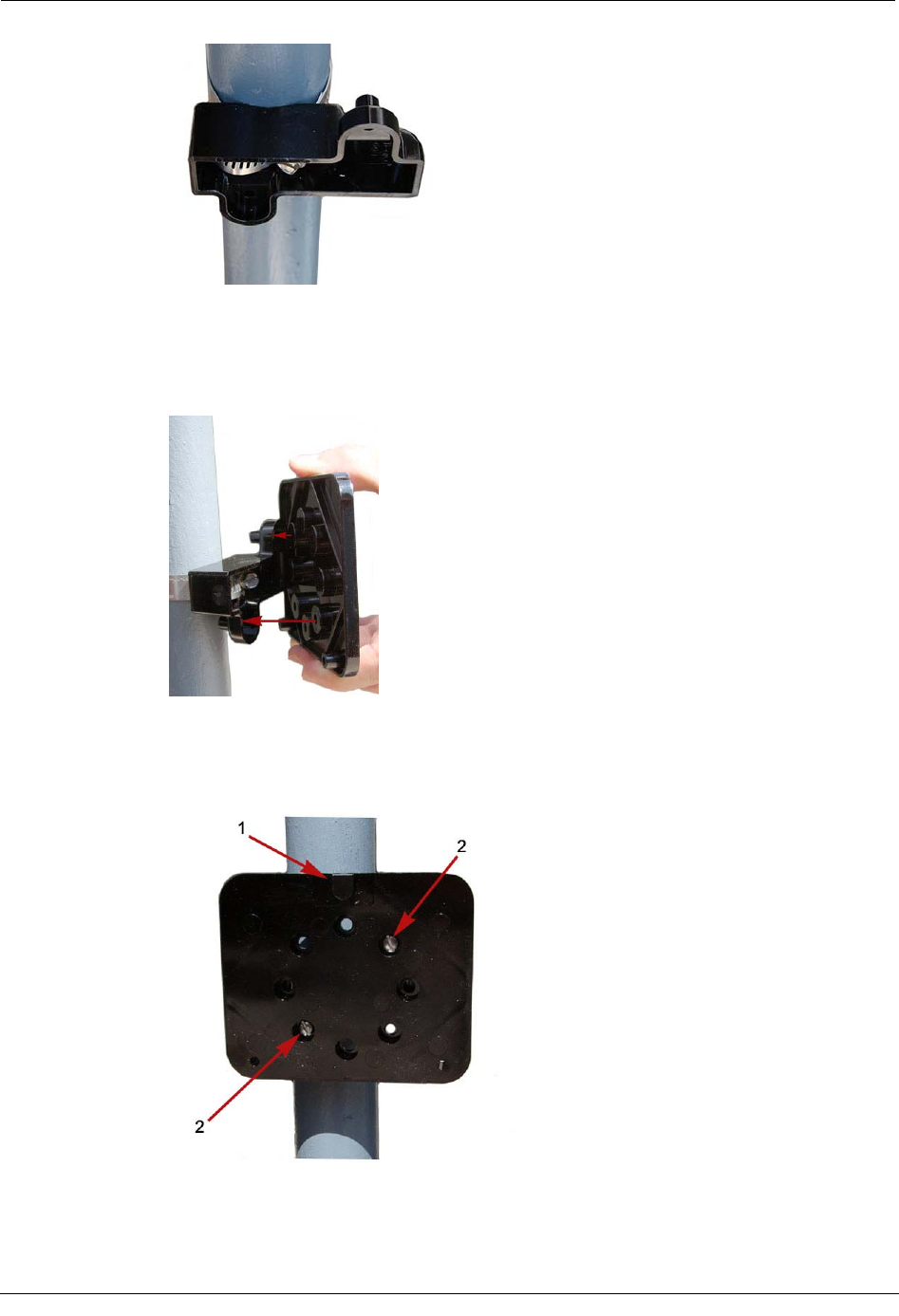 1. Place the adapter plate on the pipe bracket with the mounting lug at the top. The