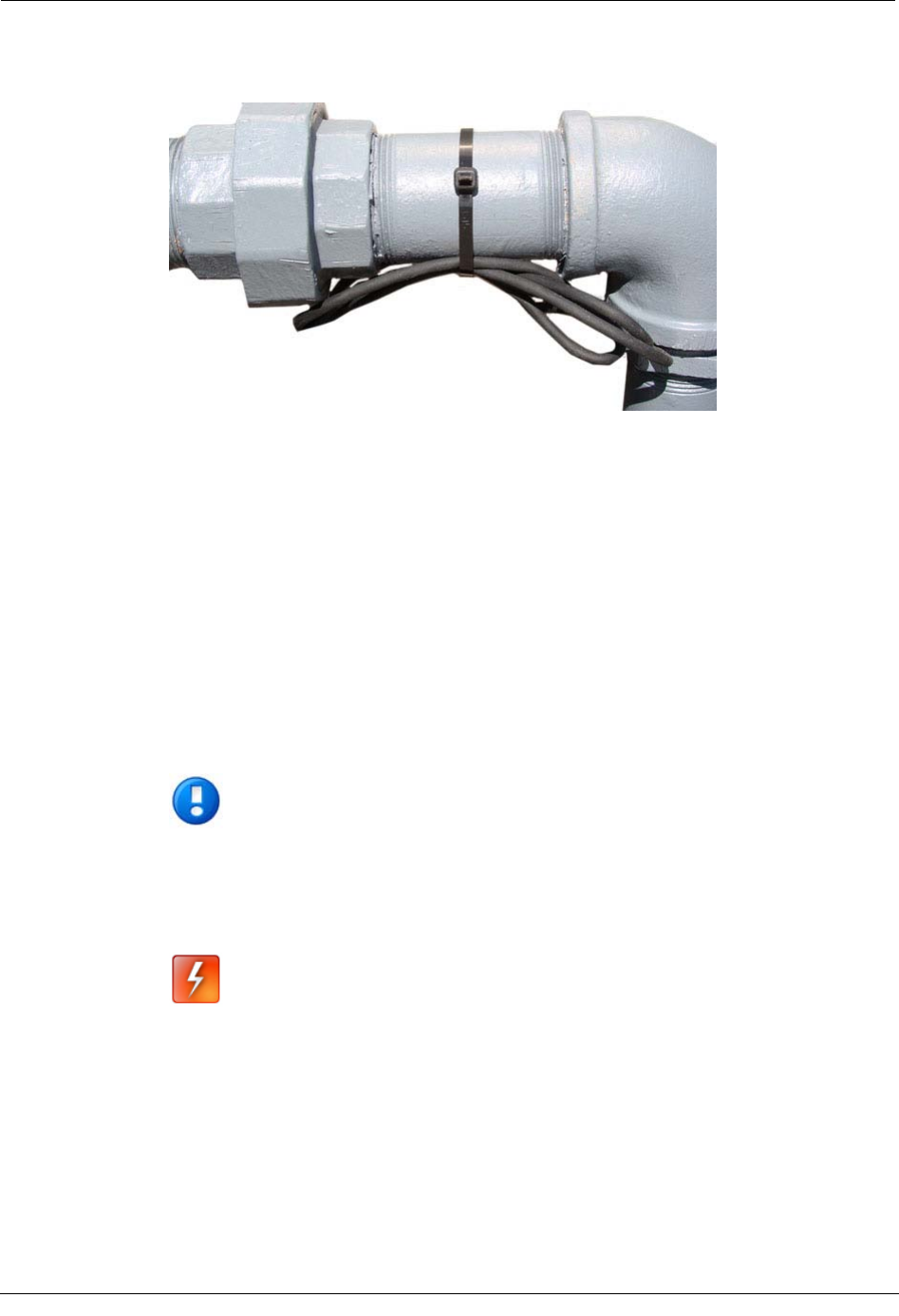 3. Gather any excess endpoint cable. Loop a cable tie around the pipe and excess