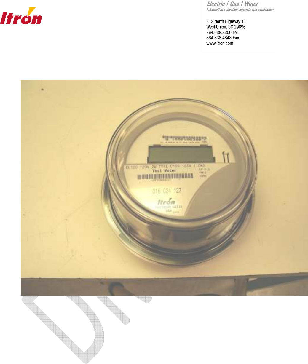 Itron, Inc. Centron C3A2H Meter Module 16 0057 Exhibit Cover