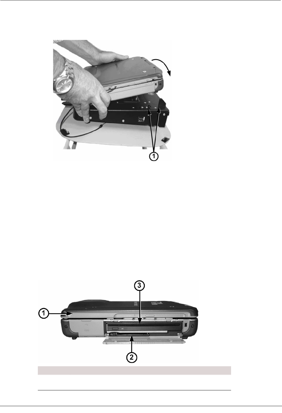 • GoBook III Push in underneath the locking mechanism (1) and then pull the