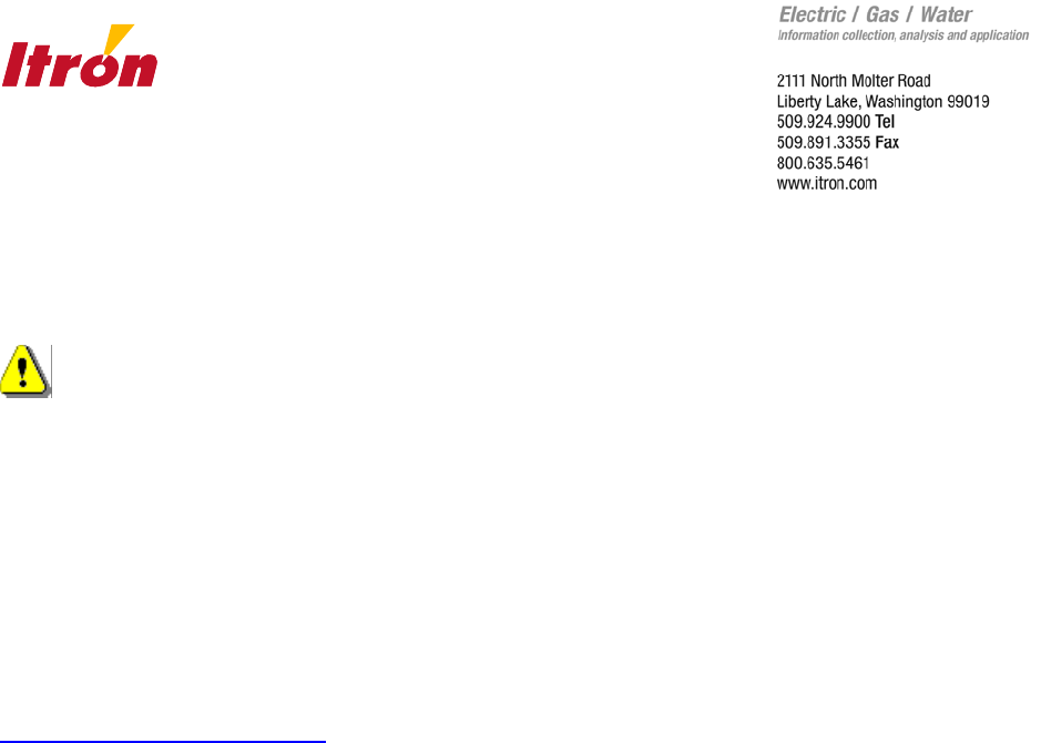 assembly shall not be changed or modified without the express written approval of Itron. Any