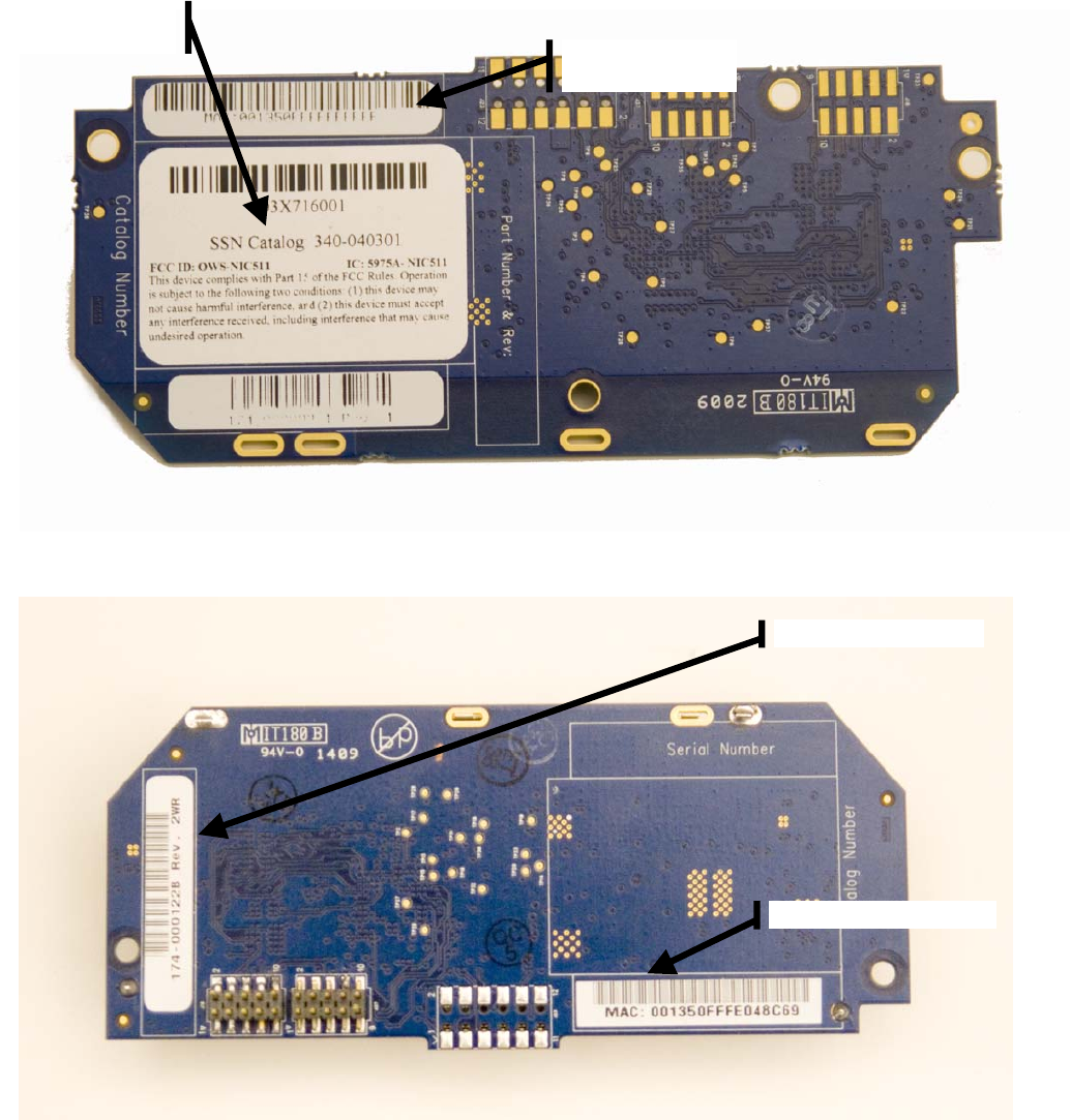 The SSN I-210+ NIC has two labels relevant to meter final assembly and RMA – the FCC & GE