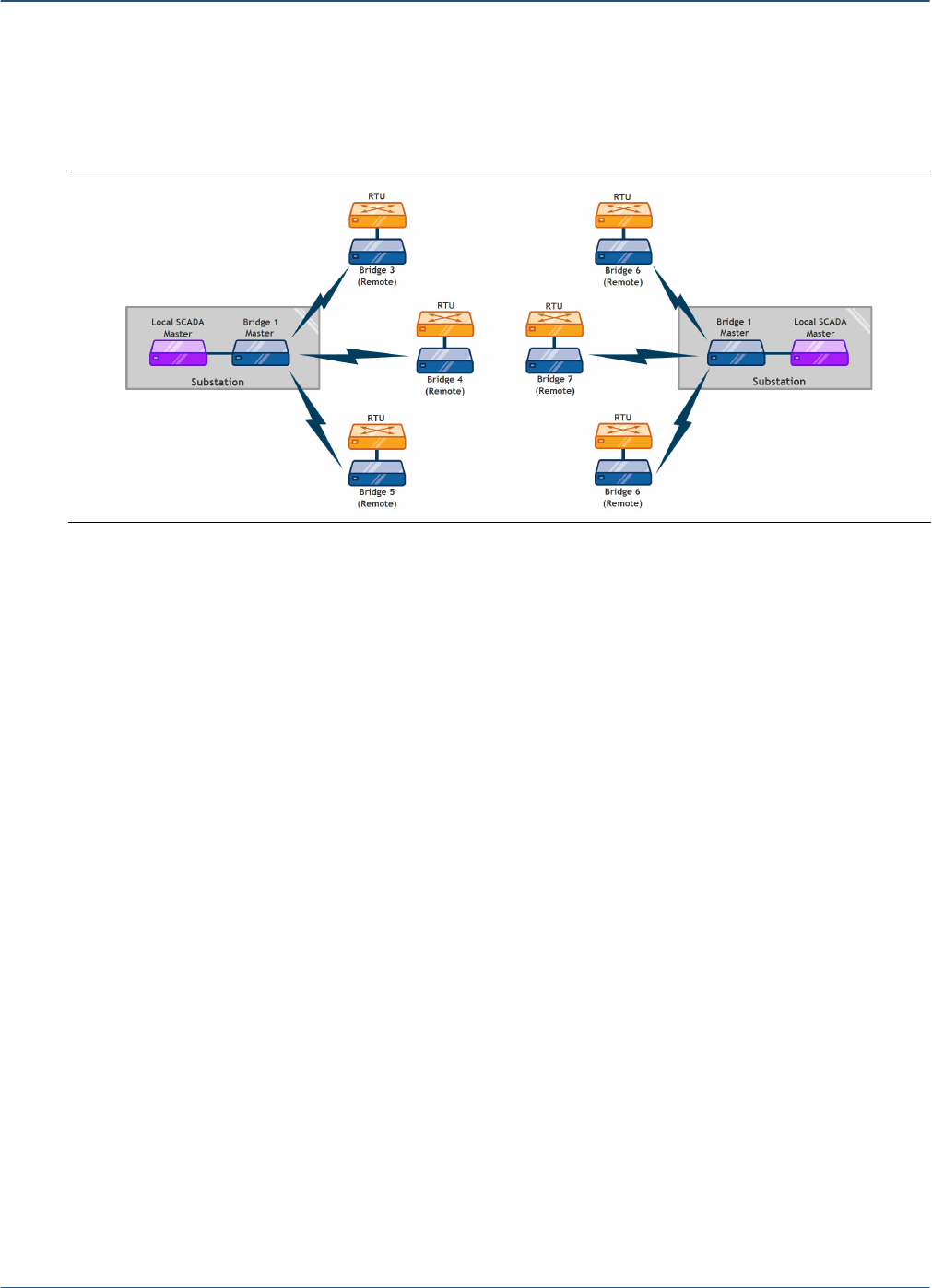 or more RTUs. The RF interface connects all bridges together in a routable RF wireless network