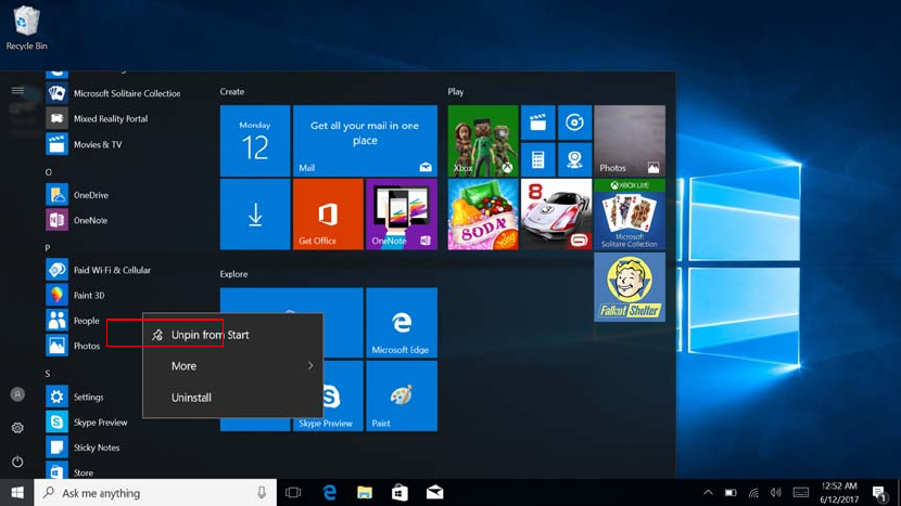 Windows 10 s tart image: On the start scr een, you can see many programs fixed i n the image. These