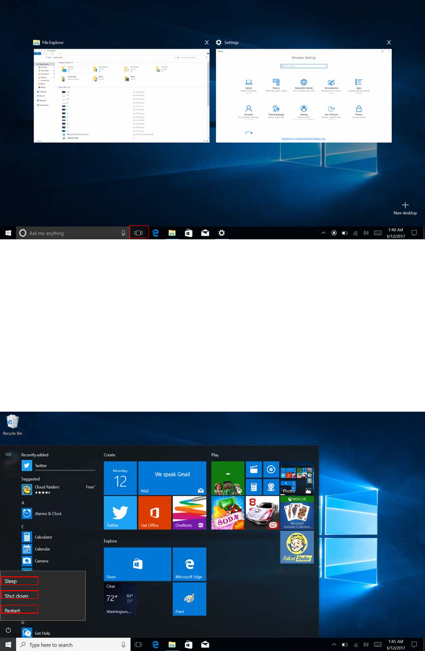If you Click the Task View(or press the icon ), the running applications will be display. We can enter