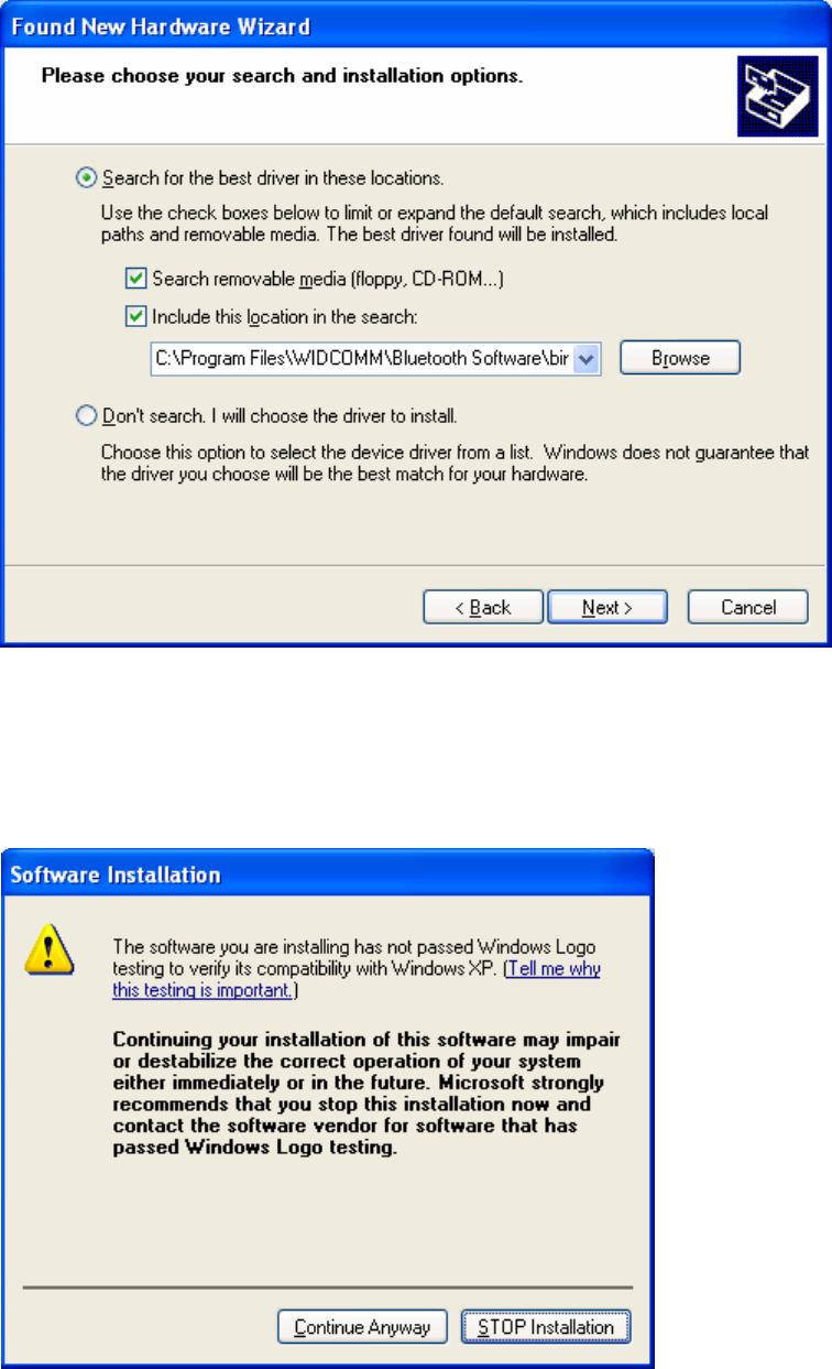 Bluetooth Software\”. Click on “Next”