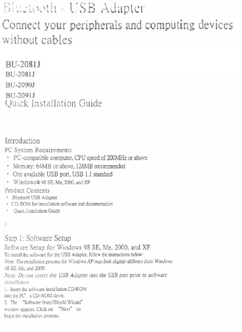 J Three Holding BU-2084-J BLUETOOTH USB ADAPTER (Class II) User Manual User Maunal