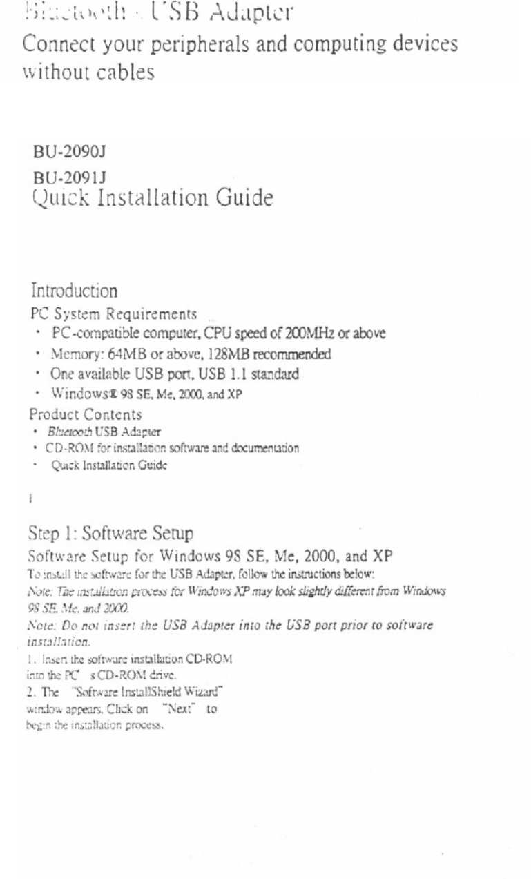 J Three Holding BU-2094-J BLUETOOTH USB ADAPTER (Class I) User Manual User Maunal