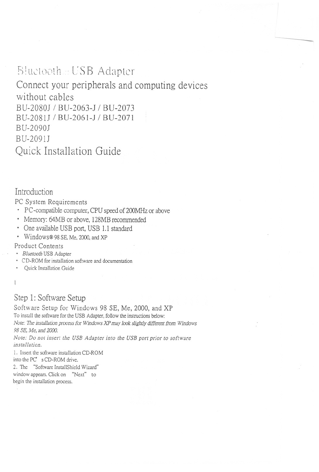 J Three Holding BU2061J BLUETOOTH USB ADAPTOR User Manual