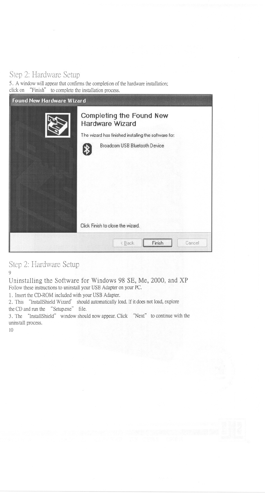 Bluetooth device inserted. Refer to the "Hardware Installation" section of this User