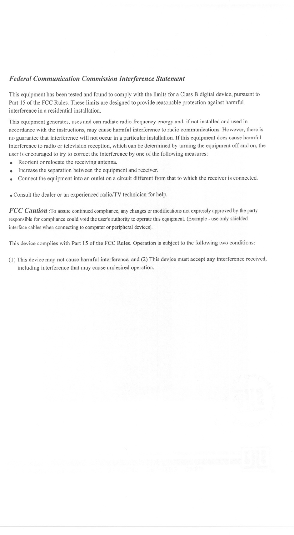 Part 15 of the FCC Rules. These limits are designed to provide reasonable protection against harmful