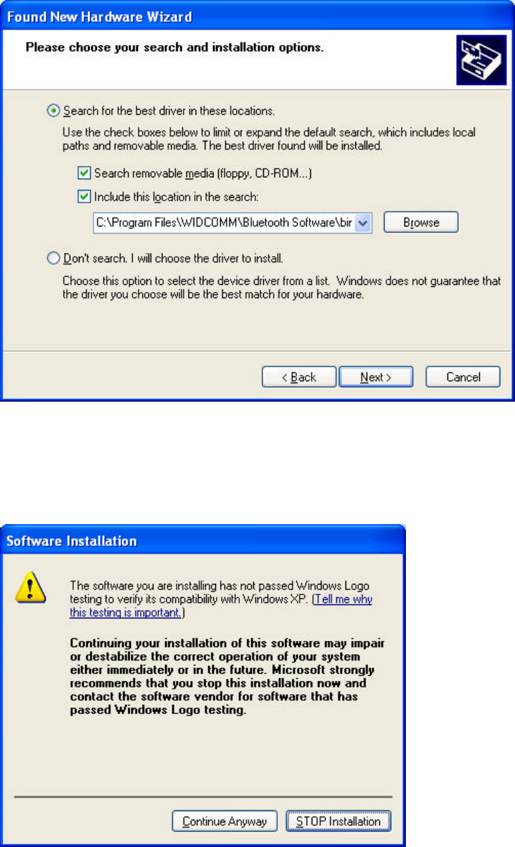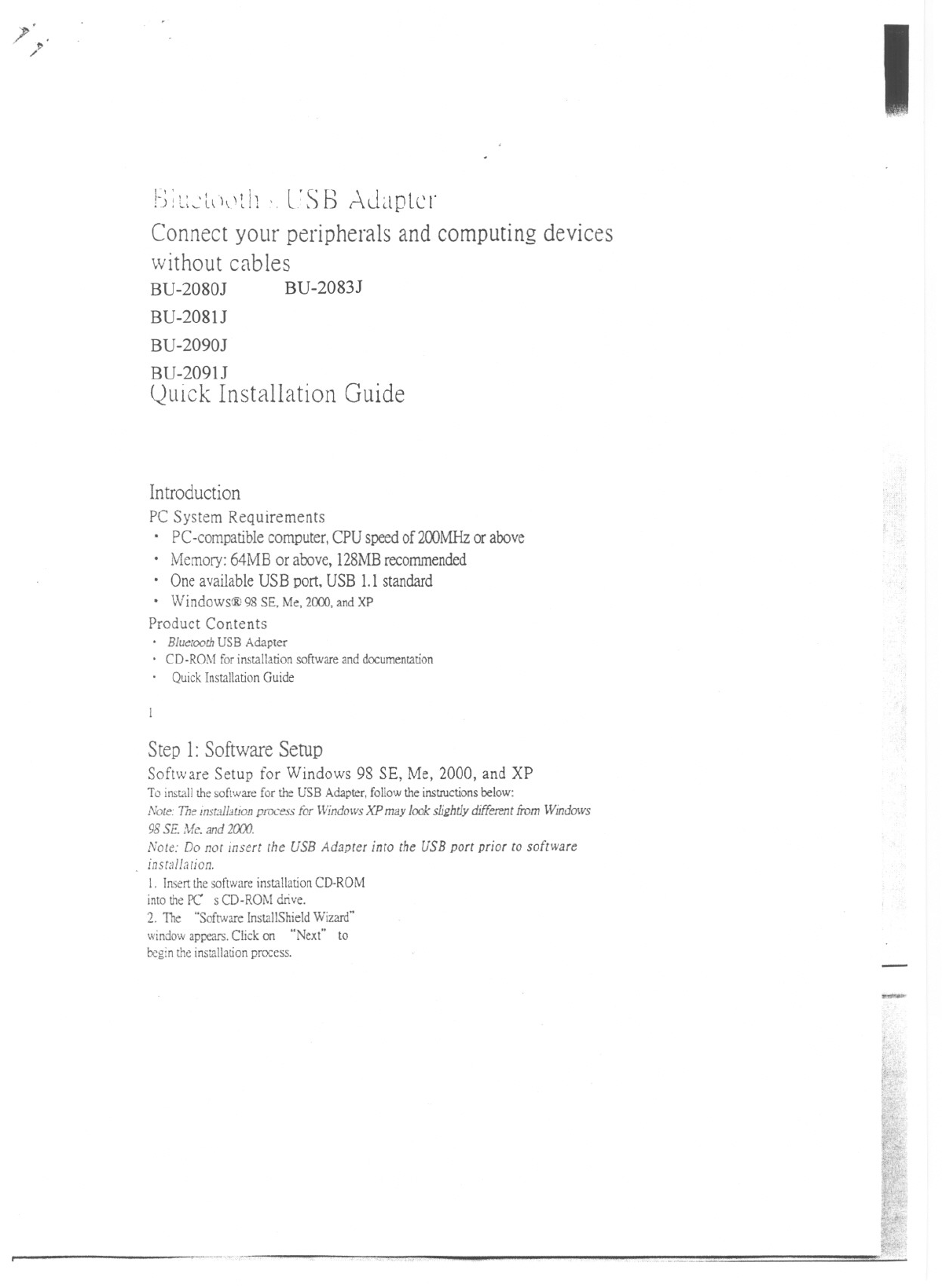 Bluetooth device inserted. Refer to the “Hardware Installation” section of this User