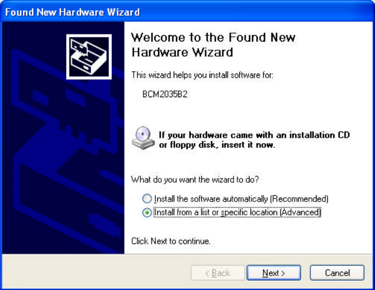 Bluetooth Software\”. Click on “Next”