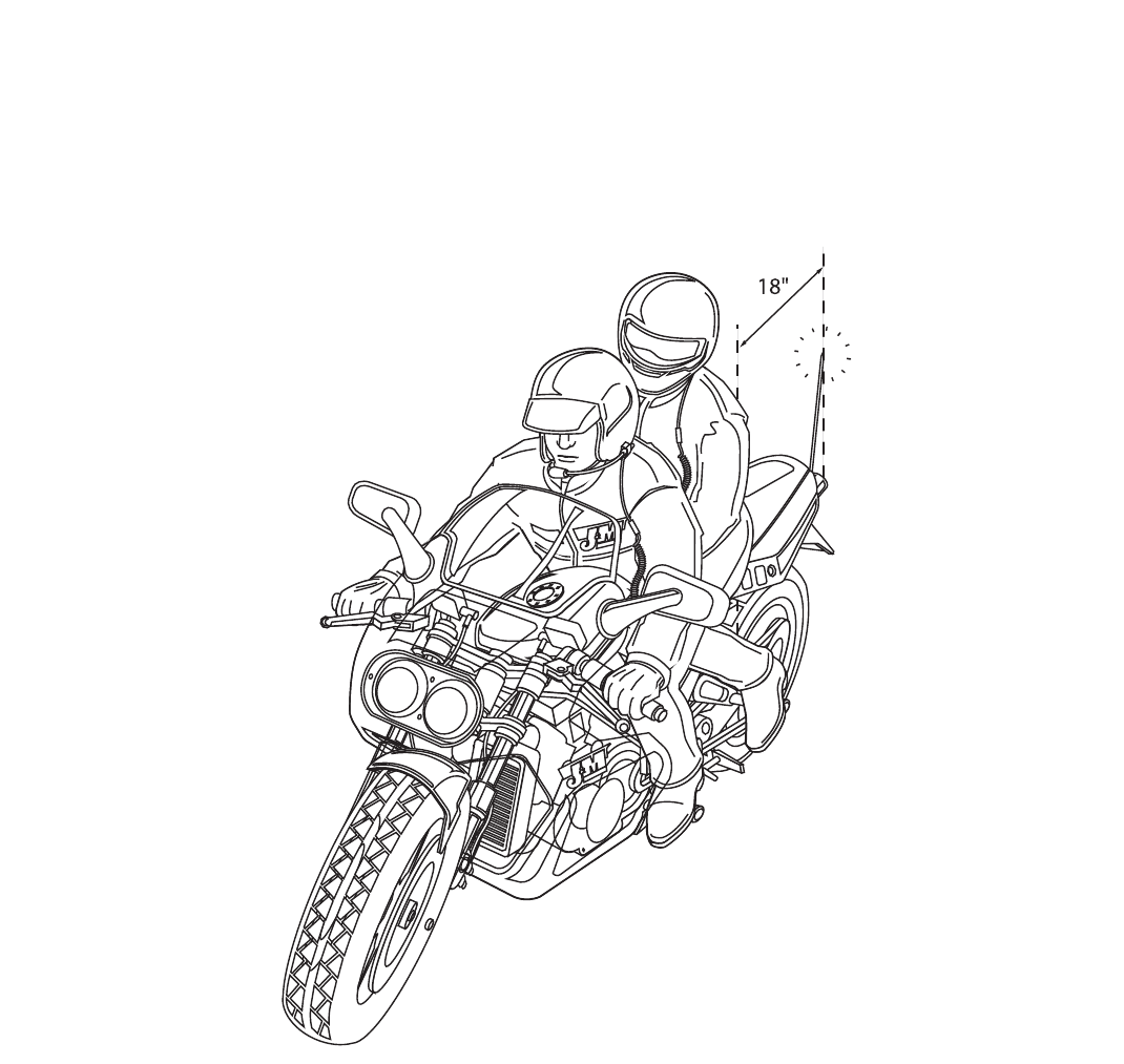 A minimum distance of 18” between the CB antenna and the operator or passenger of