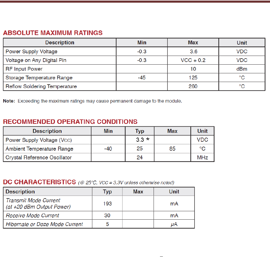 To ensure FCC compliance, the end-user must provide a regulated 3.3 VDC + 1% voltage source to Vcc.