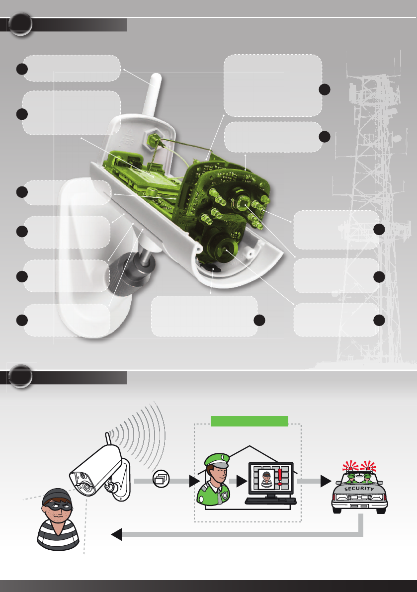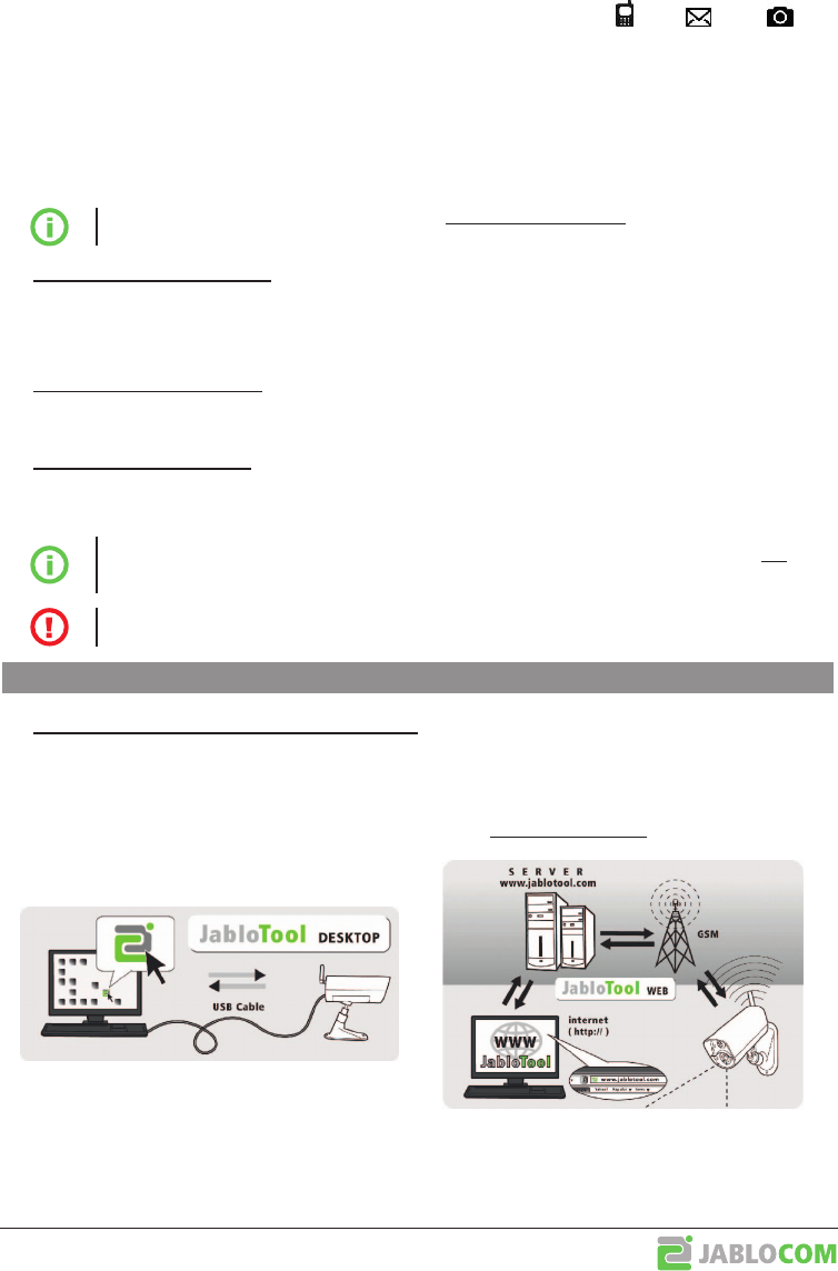 • EYE-02 sends an alarm record using MMS, e-mail, SMS or voice call. Copies of pictures and videos