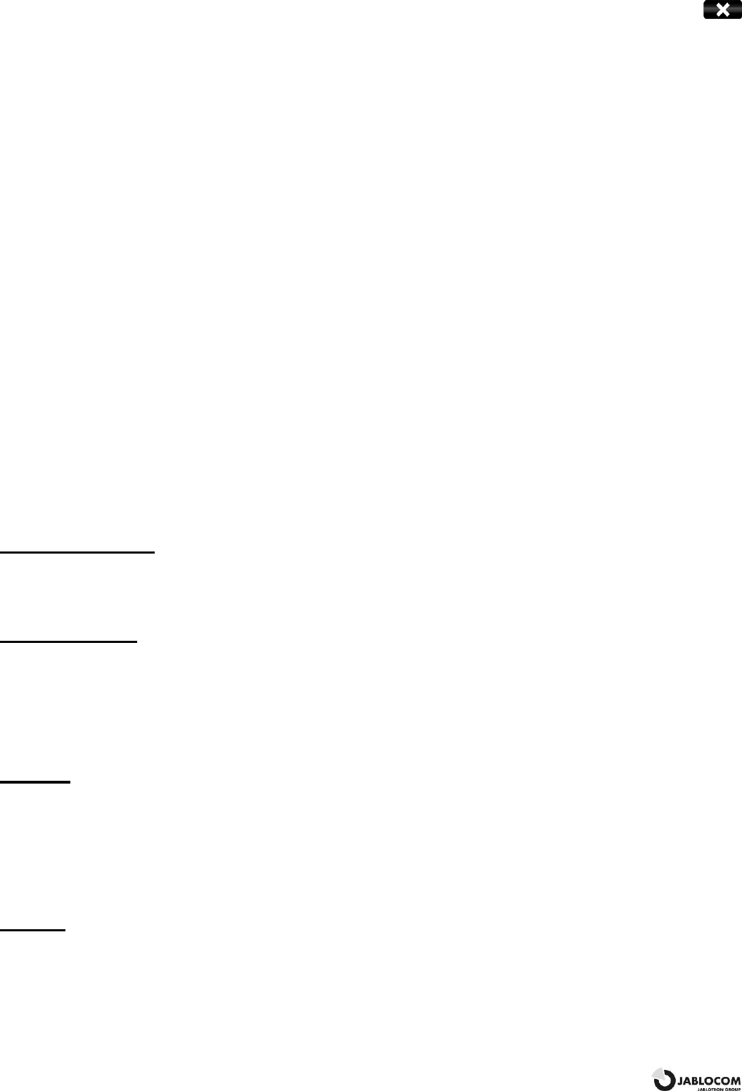 Use only Jablocom approved accessories and batteries. Do not connect incompatible products or accessories. Take care not to touch or allow metal objects, such as coins or