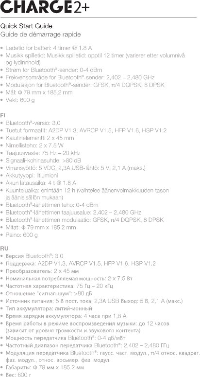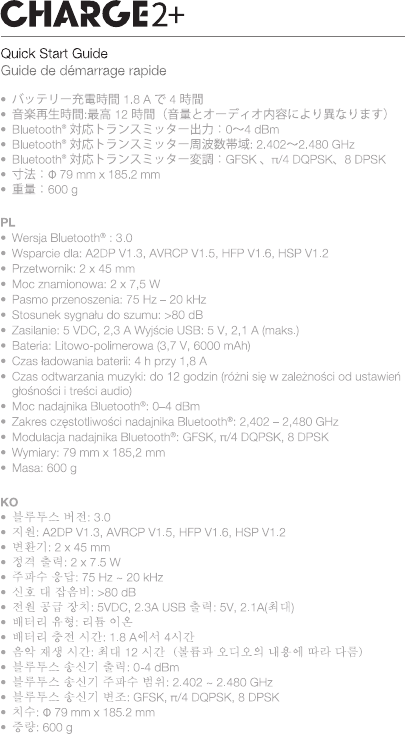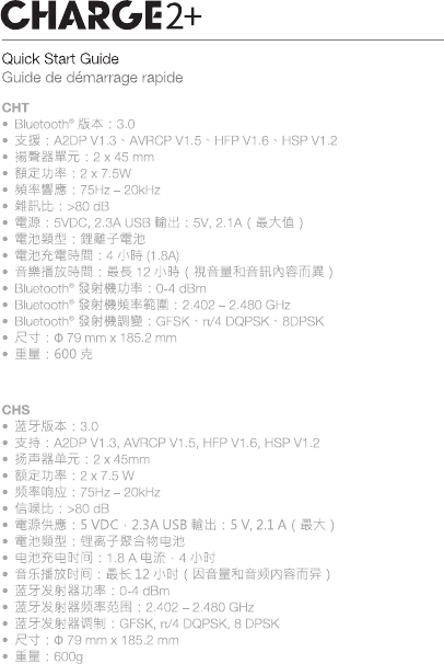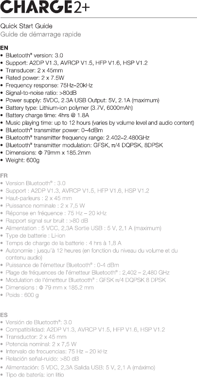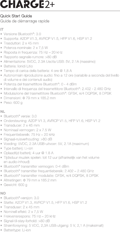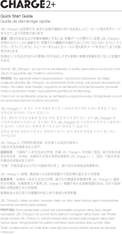 JBL TR00245_JBL Charge 2+_QSG_B_v9 Quick Start Guide (Multilingual) English 15 MB CHARGE2 Plus QSG EN