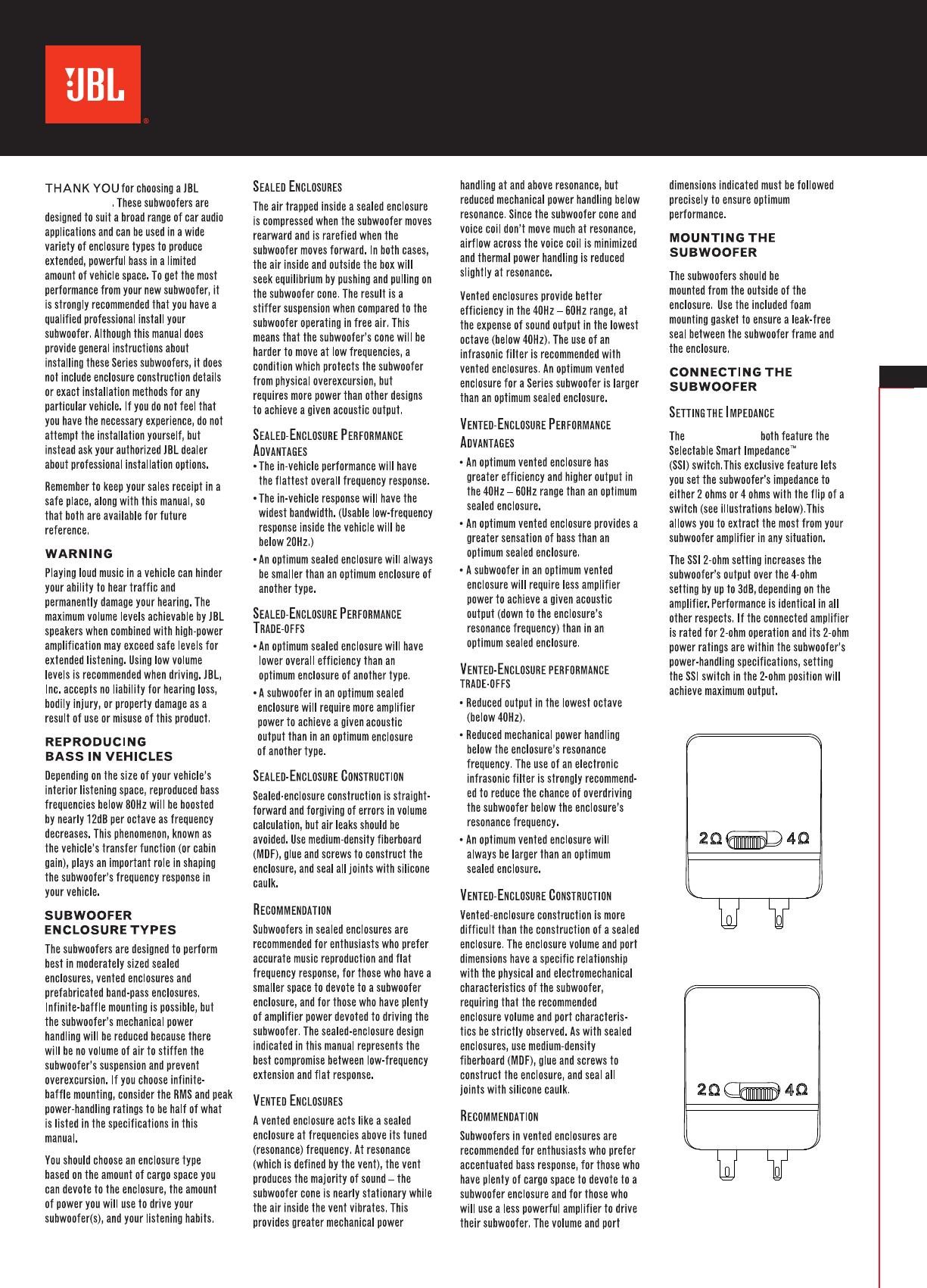JBL TR04408_JBL Club Subwoofer_Owners Manual_A_V2_LD Subwoofer 1024 1224 Owners Manual