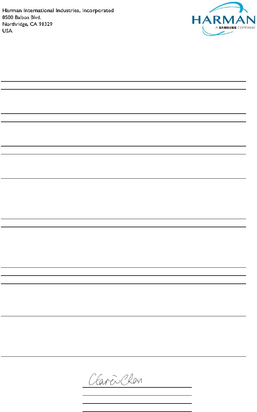 Iffirmat għal u f'isem: Harman International Industries, Incorporated