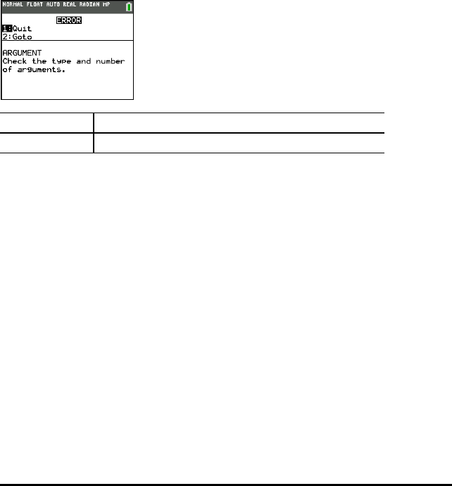当TI-84PlusCE 检测到错误时,它会显示简短的错误消息。