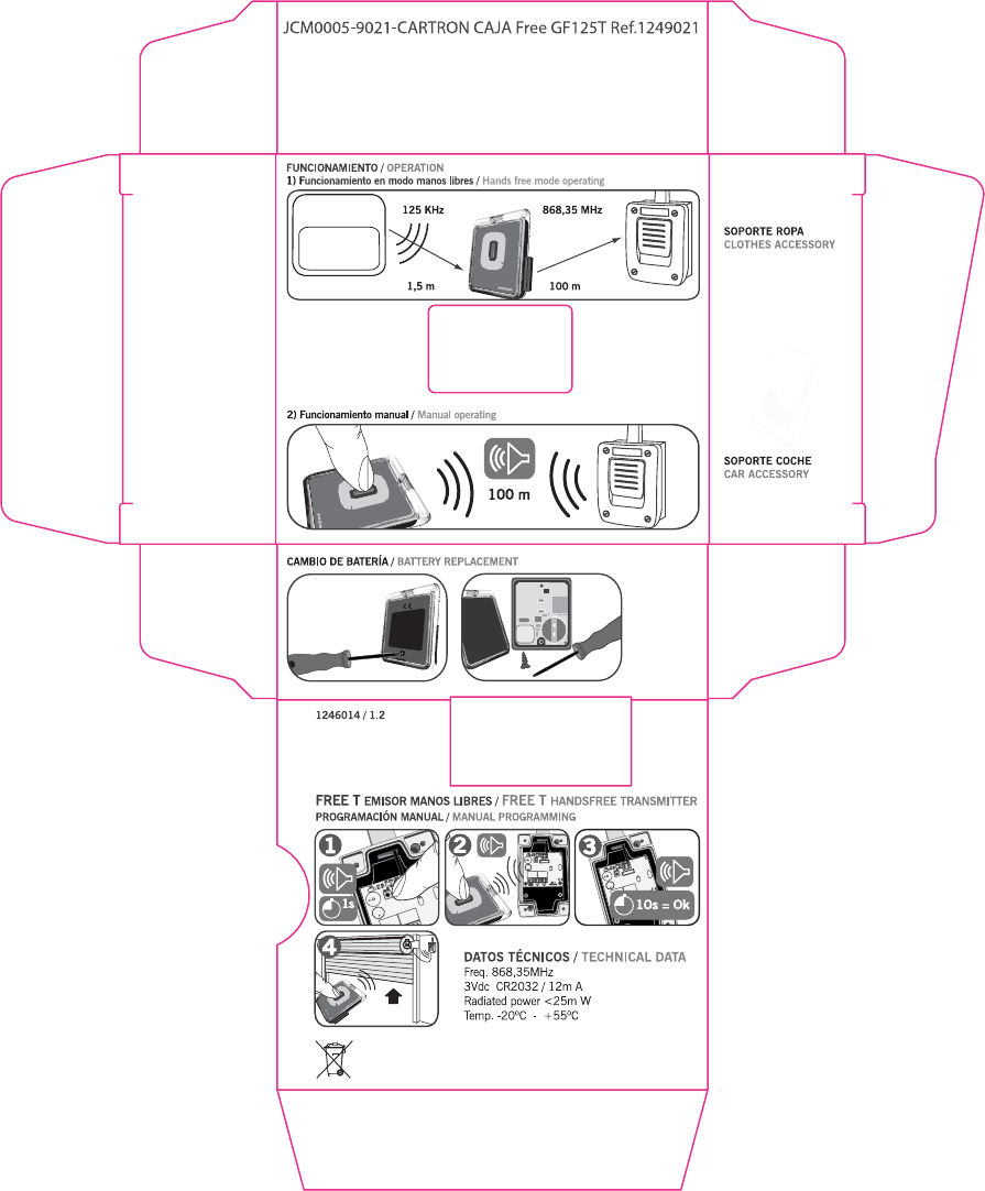 JCM Technologies, S.A. Remote Control 1246014 FREET FCC v1 2
