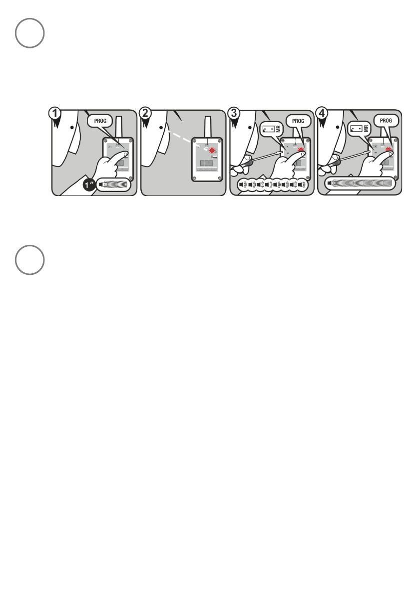 • Keep the programming PROG button pressed down and make a bridge with the “MR”