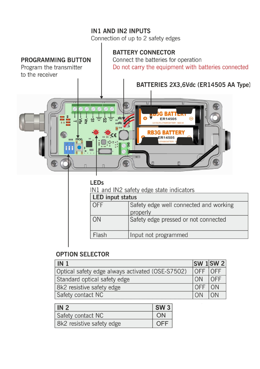when working with optical safety edges. All transmitters in the receiver work in the