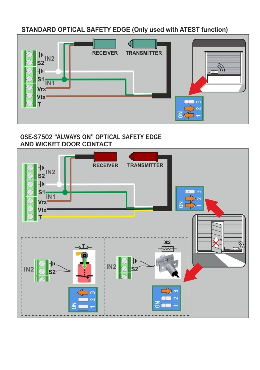4.4 MODE 4: Safety edge connected to IN1 activates R1 and safety edge connected to IN2
