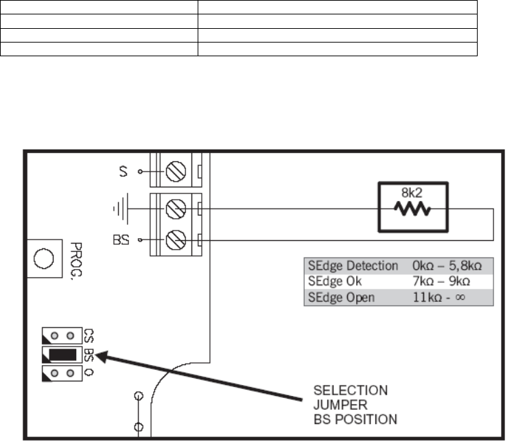 In case of using an opto safety edge, this auxiliary input will be on the BS terminal.